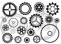 Jag har använt mig av en himla massa stämplar från Vilda Stamps, men även utstansade turkosa kugghjul :).