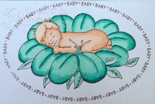 I think that the lovely stamp (V713) shows up well in this way. I colored with copics.