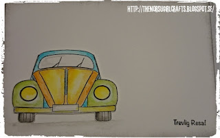 Jag gjorde detta kort i somras, på utbyträffen, när jag hade bestämt mig för att bara sitta och färglägga med akvarellteknik – med distressfärger.