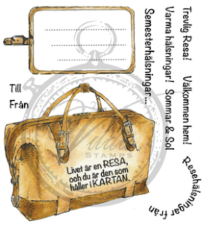 Stämpeln “trevlig resa”, har jag hittat i ett kit med en väska/bag, etikett och andra resetema-ord/-uttryck, däribland: “Livet är en resa, och du är den som håller i kartan.” (resekit v357)…