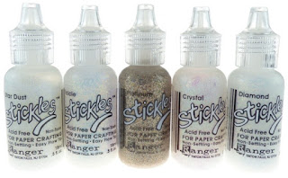 Jag har torrembossat ett papper med en embossingfolder från Marianne Design (Anja’s Circle) som jag sedan färgat in präglingen på, med Sky Blue Archival ink-färg. Jag har därefter glittrat texturen med glitterlim (Diamond Stickles).