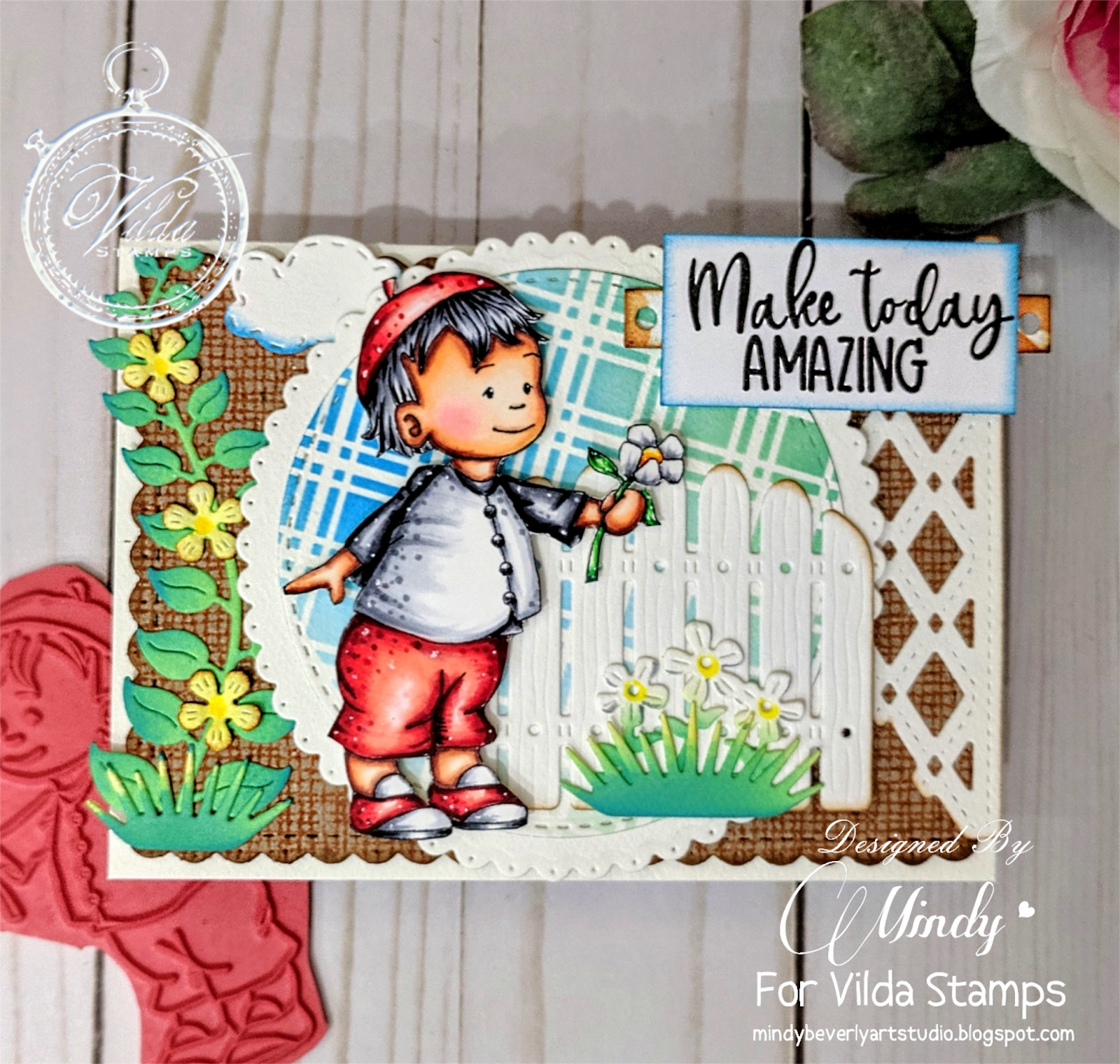 Vilda Stamps using the super Adorable Anna & Pellem Flower rubber stamp set V864.