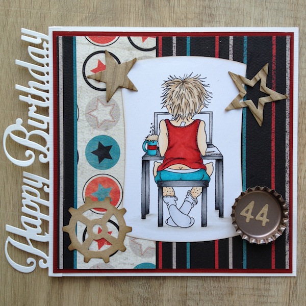I have used papers from Authentique. The Happy Birthday die is from Joy. I also used dies from Tim Holtz and Memory box and i used a cap to put the age on